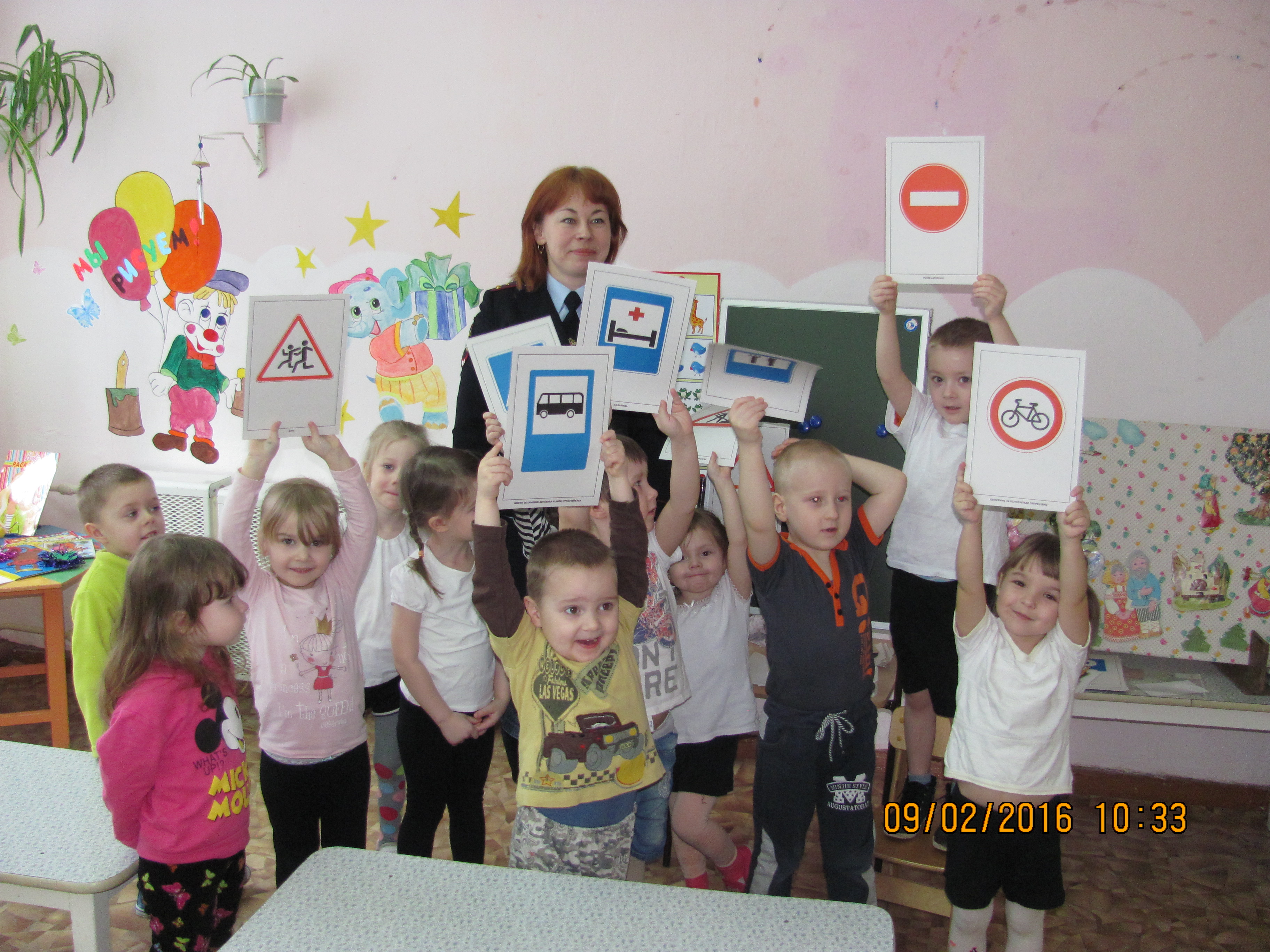 9 февраля 2016г. в детском саду организованы занятия по правилам дорожного движения с инспектором ГИБДД Ашихминой Екатериной Владимировной. В средней и старшей возрастной группе дети в игровой форме получили информацию о дорожных знаках и элементарных правилах дорожного движения.